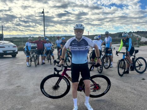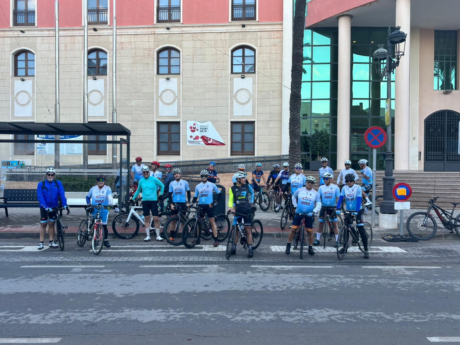 Preparados para la salida. Hoy, entre socios e invitados unos 24 ciclistas más menos.
