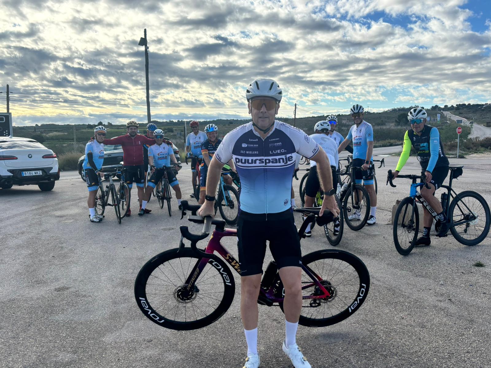 Fatal salida para mi este día. A las 8:05 cuando acudía a la salida dominical, un poco de barrillo en el carril bici que me lleva por la antigua carretera del aeropuerto me hizo perder el equilibrio y hacerme caer de costado contra el barro. Nuestro compañero Belga Bart me vio levantarme del suelo.