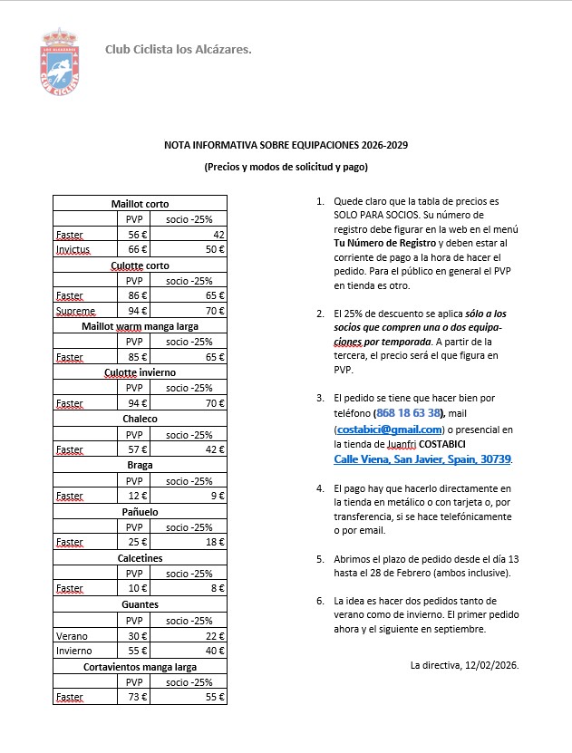 Para hacer los pedidos de equipaciones ponte en contacto con CostaBici